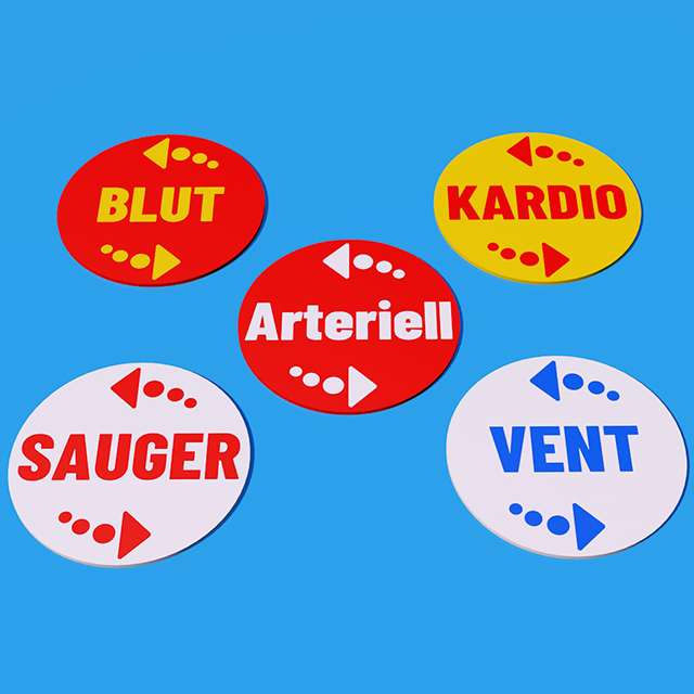 Tags zum Markieren der Pumpen und der Drehrichtung